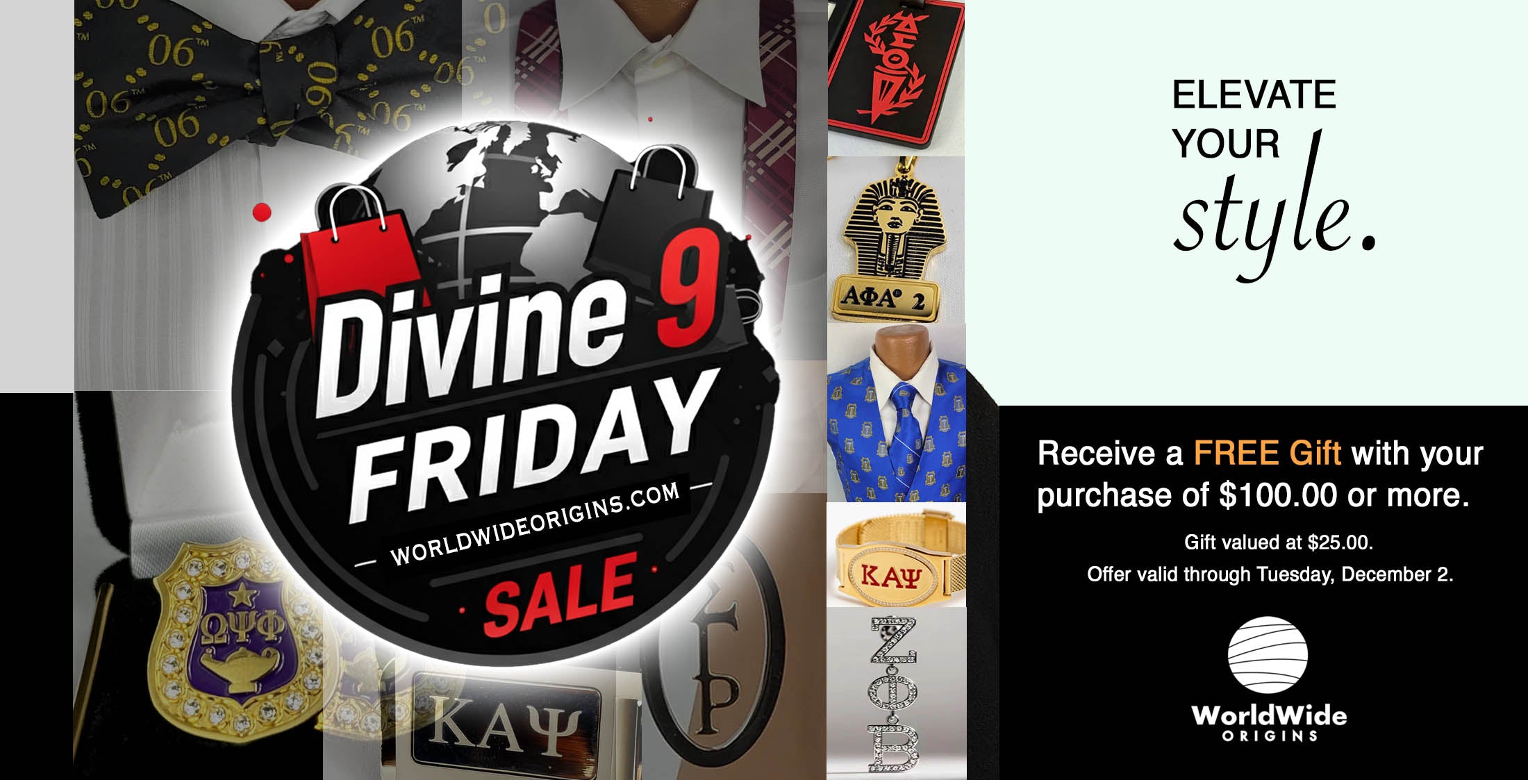 Discover the Divine 9 Friday Sale at Worldwide Origins! Shop premium D9 Greek apparel and Greek paraphernalia, perfect for gifts. Free gift with $100+ orders!